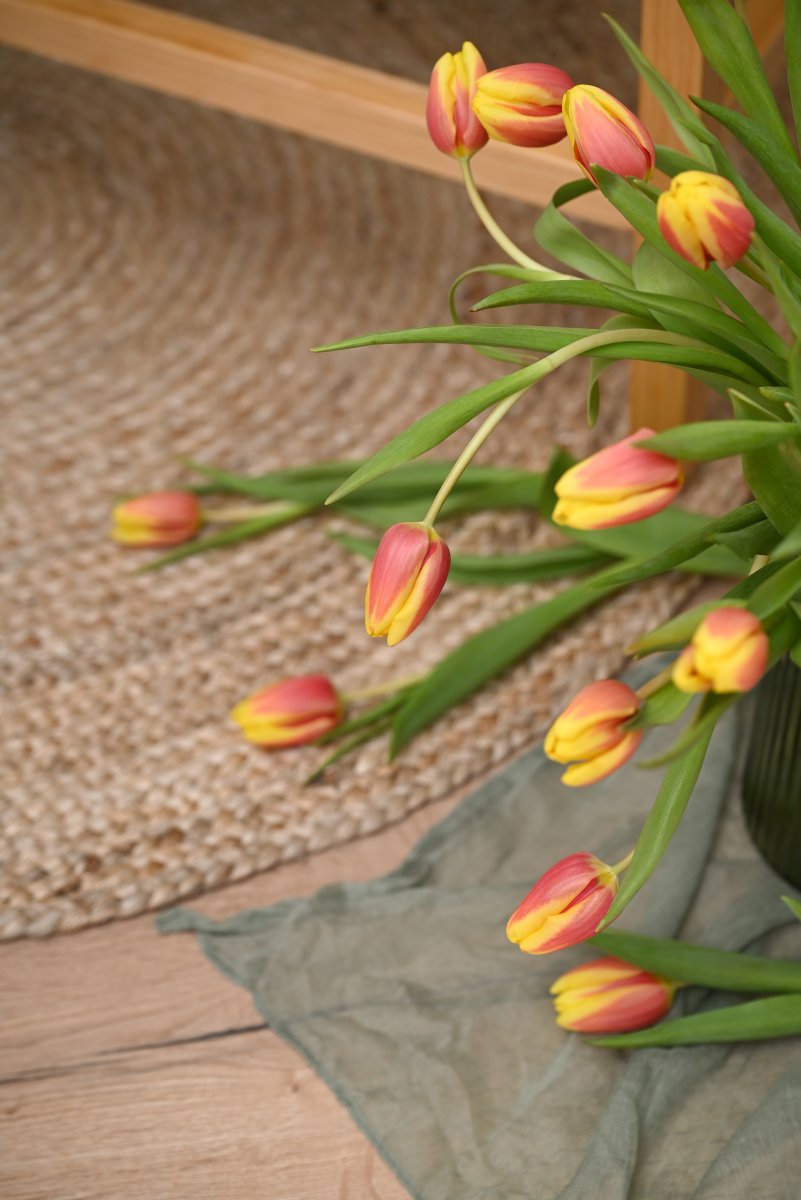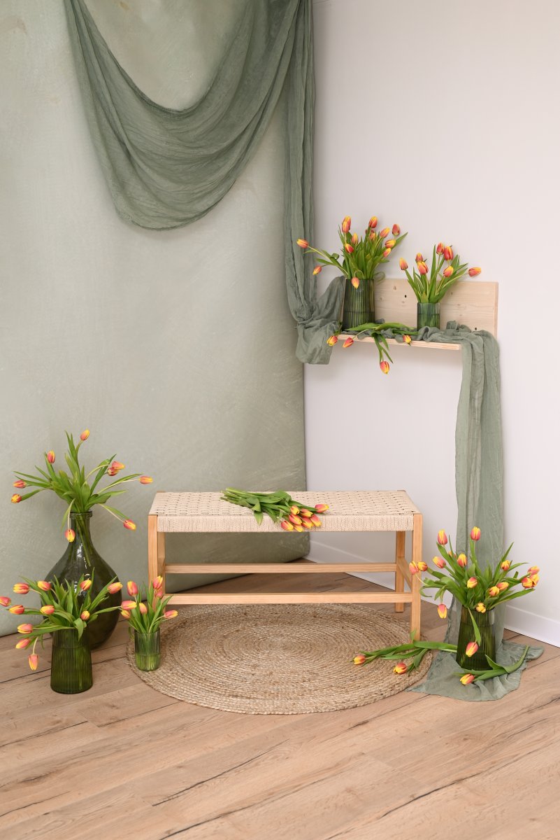 Lumină caldă, texturi naturale, verde pastel și lalele proaspete care dau viață fiecărui cadru.